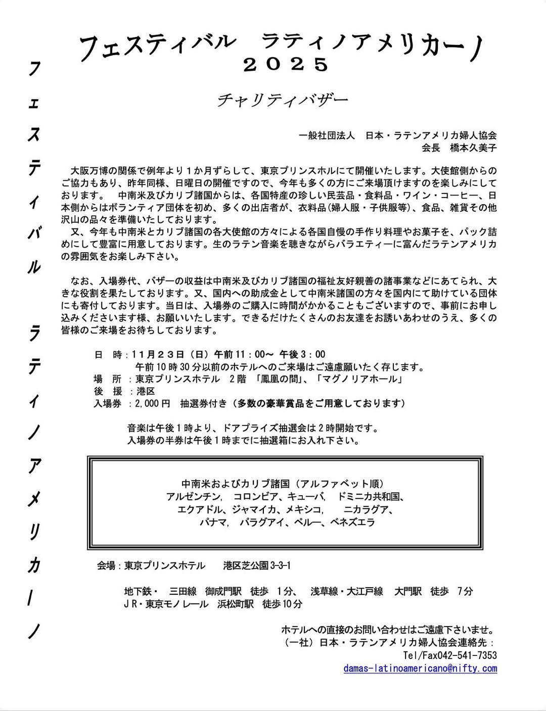 2025年11月23日(日) フェスティバル ラティノアメリカーノ 2025 @ 東京プリンスホテル