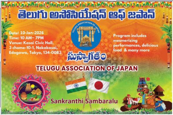 2026年1月10日(土) 葛西区民館では南インド・テルグ人会(TAJ)主催で「 サンクランチ サンバラル 2026 」が開催されます。