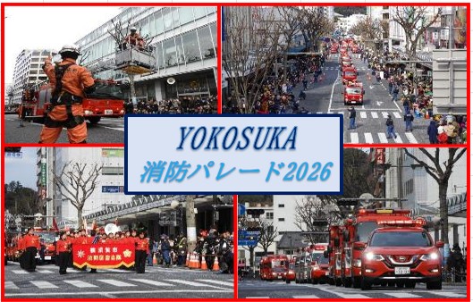 2026年1月11日(日) 米海軍横須賀基地のそば 横須賀中央大通り では、消防車両によるパレード「 YOKOSUKA消防パレード 2026 」が開催されます。