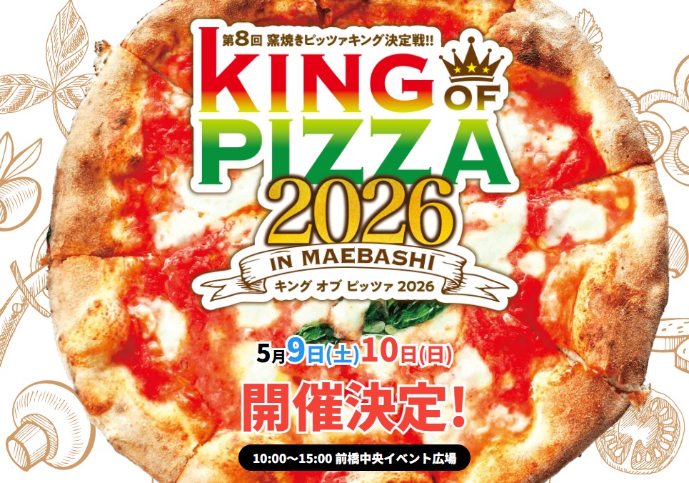 2026年5月9日(土)〜10日(日) 前橋中央イベント広場にて「 第7回 キングオブピッツァ 2026 」が開催されます。