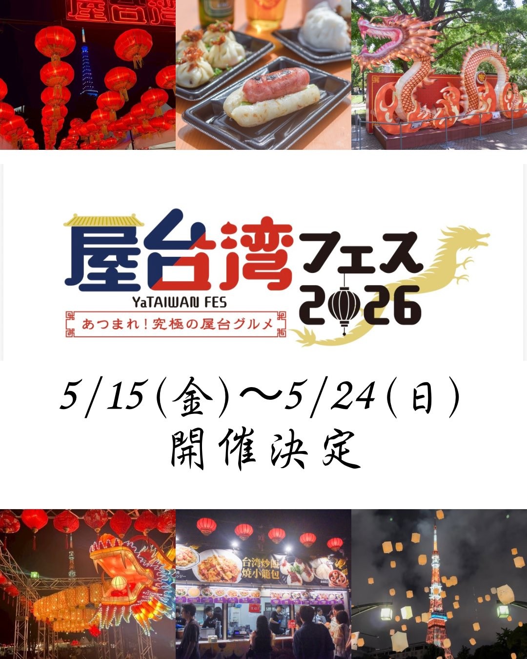 ホーム > アジアイベント > 5/15-24: 屋台湾フェス 2026 in 芝公園御成門駅前 (都立芝公園4号地)