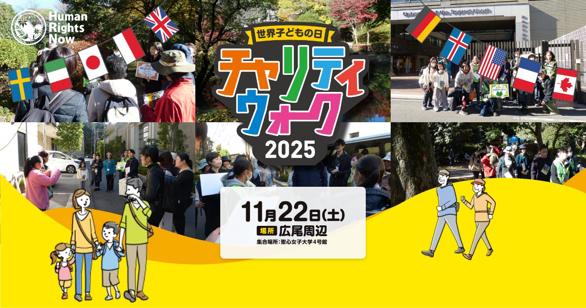 2025年11月22日(土)広尾周辺で「 世界子どもの日 チャリティウォーク 2025 」が開催されます。日本発の国際人権NGO「ヒューマンライツ・ナウ」と「聖心女子大学グローバル共生研究所」が主催するチャリティーウォークツアーで、大使館や国際組織、公園など、広尾周辺の約5kmの道を歩きます。