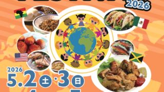 2026年月5月2日(土)〜5月5日(火祝)の4日間 横浜市の沢渡中央公園にて「 ワールドフェスティバル 国際交流フードフェア 」が開催されます。世界各国のグルメブースをはじめ、海外の雑貨・アクセサリー・民族衣装などの販売が予定されてます。海外のマーケットを訪れたような空間で、食・文化・交流を楽しめるイベントです。